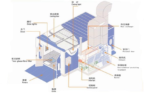 噴烤漆房最早起源于意大利,國內(nèi)從80年代開始引進噴烤漆房的技術并投入生產(chǎn)。現(xiàn)國內(nèi)噴烤漆房生產(chǎn)廠家主要分布于江蘇鹽城、廣東、山東等地區(qū)??酒岱康淖饔镁褪菍ぜ砻孢M行噴漆、烘干處理。