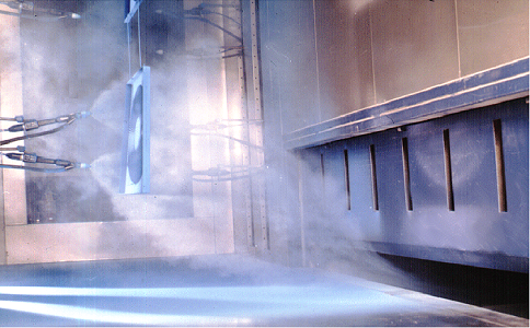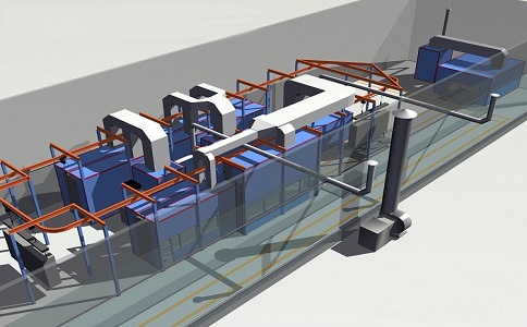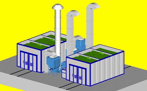 噴漆房系統(tǒng)設(shè)備具備清洗、噴漆及烘干處理功能。油漆上漆率可以控制在合理的范圍內(nèi),有限控制有機(jī)溶劑使用量。噴漆房漆霧過(guò)濾采用干式過(guò)濾,噴漆時(shí)采用頂部靜壓層均勻送風(fēng),底部干式過(guò)濾抽風(fēng),整個(gè)噴漆房處于微負(fù)壓狀態(tài);